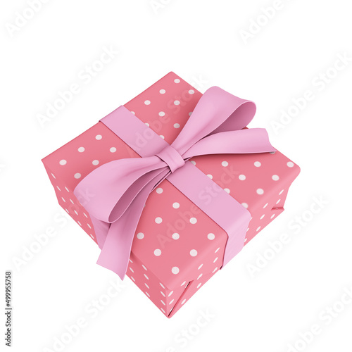 Gift Box with Ribbon Bow. Template for Present, Valentine, Birthday or Wedding Banners. 3D Illustration. File with Clipping Path.