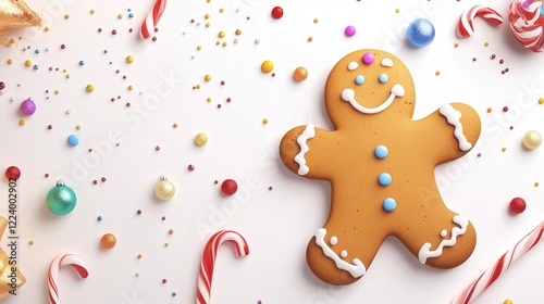gingerbread man cartoon with a big smile, decorated with icing and candy for a joyful Christmas look