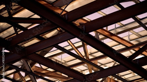 girder. Detailed steel frame construction in an industrial workshop, showcasing structural design and engineering. safety posters.