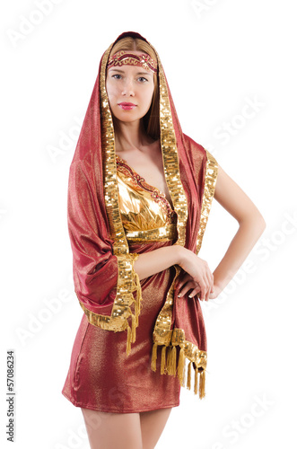 Girl dancing belly dance on white