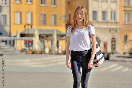 warsaw, poland, lock, square, woman, girl, cute, cute, mile, smiling, tour tourism, emotion, positive, eye, bag, city, street