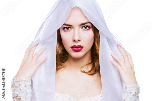 young, woman, veil, cherry, lipstick, purity, beautiful, amazing, art, beauty, bridal, bride, caucasian, clean, clear, copy space, cosmetic, dress, elegance, face, fashion, female, feminine, fiance, fresh, gentle, girl, glamour, happy, innocence, isolated, lace, lady, light, lip, love, luxury, make-up, model, people, portrait, red, sensual, sexy, studio, style, vogue, wedding, white