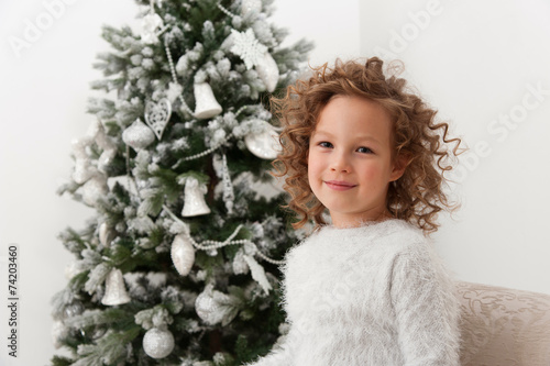Girl on background of Christmas tree
