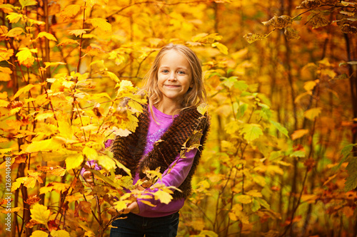 children, children, girl, joy, happiness, success, happy, smile, outdoors, green background, positive, affirmative, staid, assertive, autumn, beautiful girl, caucasian, golden hair, yellow leaf