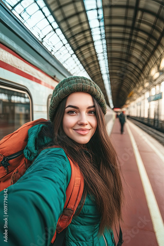 girl, wait, train, platform, selfie, beautiful, holiday maker, railroad station, travel, adventure, journey, exploration, photo, excitement, commuter, vacation, wanderlust, youth, urban, memory, scenic, leisure, anticipation
