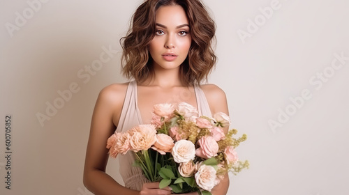 woman, flower, girl, pink, summer, beauty, dress, happy, smile, gift, background, bouquet, fashion, nature, present, romantic, hold, isolated, young, cute, attractive, hat, people, person, portrait, emotion, adult, carnation, green, positive, style, female, casual attire, shoulder, caucasian, joy, illustration, generative, ai