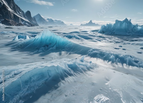 Glacier blue ice, frozen sea waves, frosted details Sharp, icy texture , wild, blue, ice