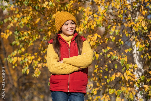 glad teen schoolgirl at school time outdoor in autumn season