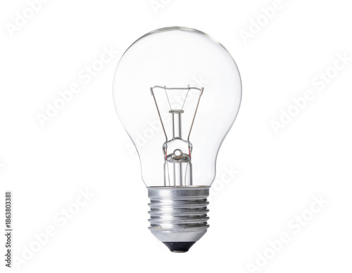 Glass incandescent light bulb with visible filament and metallic screw base