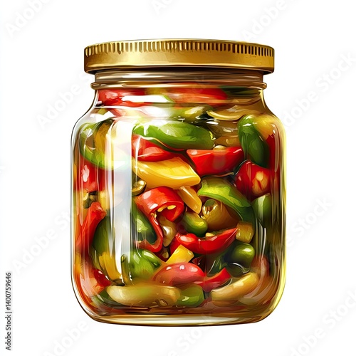 Glass jar filled with colorful pickled peppers