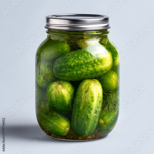 Glass Jar Filled with Green Dill Pickles Studio Shot