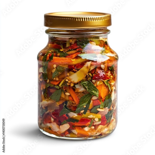 Glass jar of preserved vegetables and spices