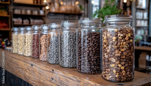 hot drink, bean, nut, jar, glasses, wood, counter, display, assortment, variety, roasted, brown, beige, grey, food, drink, cafes, shop, store, market, retail, grocery, epicure, organic, healthy, delicious, natural, fresh, agriculture, harvest, product, ingredient, beverage, aroma, favor, texture, background, rustic, interior, setting, still life, photo, image