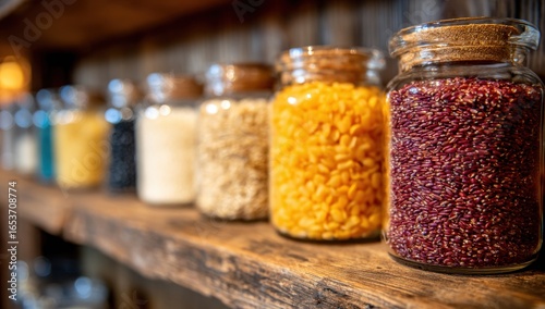 jar, marvellously, kitchen, detail, display, elegant, close, creative, brown, stunning, healthy, rustic, shelf, background, pantry, red, amazing, beautiful, professional, modern, arrangement, nourishment, stylish, cereal, storage, natural, wooden, yellow, decorative, vibrant, food, dried, colourful, lovely, grain, sharpened, variety, ingredient, fantastic, product, seed, bright, charming, organic, whole, glasses, gorgeous, texture