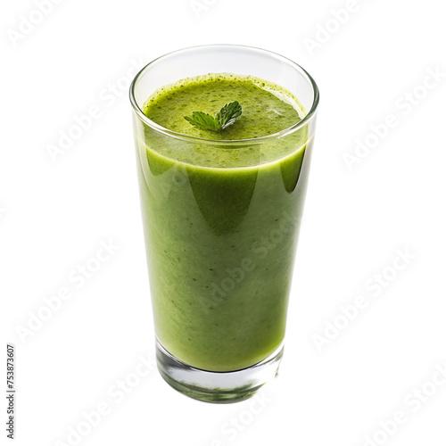 Glass of fresh green smoothie isolated on transparent background with clipping path