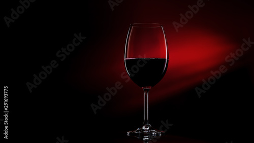 Glass of red wine on black to red gradient background. Concept studio shot.