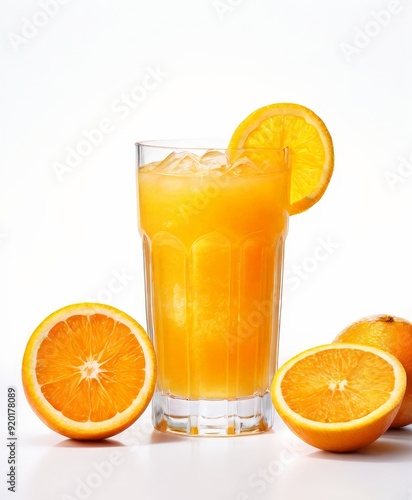 glass orange juice with slice orange
