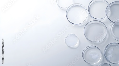 Glass Petri Dishes Scattered on a White Surface