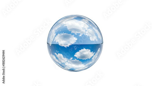 sky, cloud, blue skies, water, sphere, transparent, crystal, nature, weather, daylight, clear sky, cumulus, optical illusion, symbolism, abstract, minimalist, conceptual, round, gleaming, shiny, light, horizon, zen, serenity, peaceful, dreamy, imagination, fluid, surface, mirrored, isolated, clean