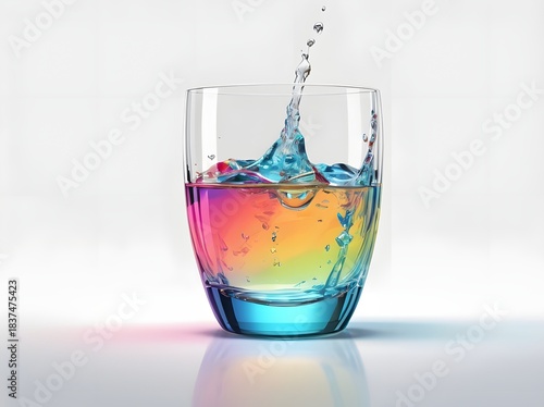 glasses, liquid, splash, water, colourful, rainbow, vibrant, drink, transparent, refreshment, freshness, motion, cocktail, beverage, clean, clear, drop, crystal, purity, bright, movement, abstract, studio, white background