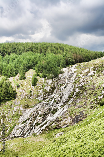 waterfall, bog, cliff, cloudscape, countryside, forest, grass, horizon, ireland, irish, landscape, limestone, mountain, national park, nature, overcast, river, road, scenery, street, travel, tree, vacation, water, wicklow, wilderness