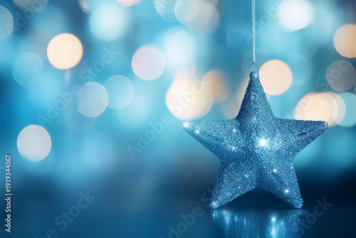 Glittering star ornament on a reflective surface creating a festive holiday celebration