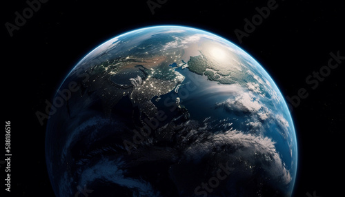 blue, planet, space, sphere, nature, global business, map, environment, night, global, cartography, africa, topography, science, dark, stratosphere, water, travel, abstract, no people, glowing, communication, business travel, transparent, atmosphere, idea, illuminated, technology, futuristic, copy space, satellite, planet earth, day, land, macro, circle, bright, wave, generative, ai