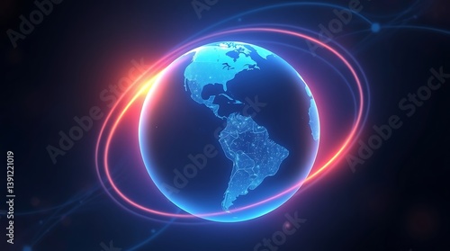 Global Connectivity: A vibrant image of planet earth, encased in a network of orbital lines, representing interconnectedness.