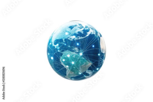 Global connectivity concept with a digital world map and network lines representing communication and technology