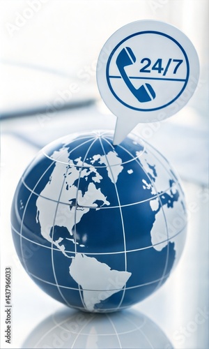 Global Customer Support Concept with 24/7 Virtual Assistance Icon