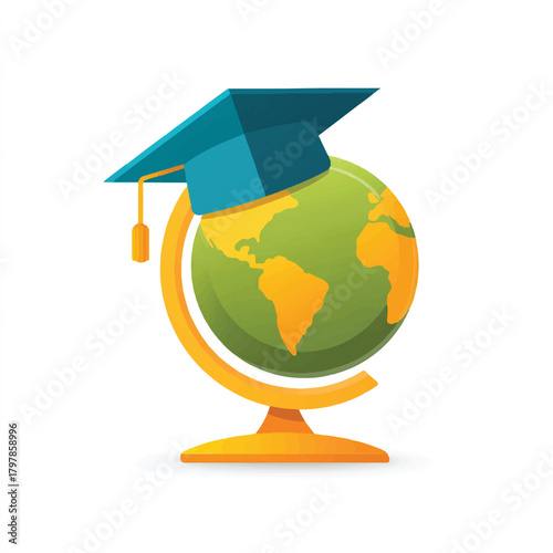 Global Education Concept with Graduation Cap on Globe Symbolizing Learning Worldwide and Academic Achievements Inspiring International Studies and Educational Travel Opportunities