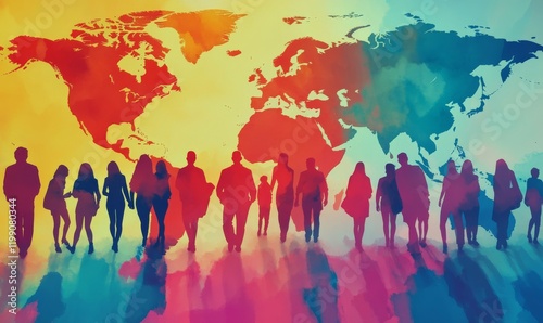 Global Generational Shift: World Population Day Visualizing Aging Population and Youth in Vivid Colors with Multiple Camera Angles, Ideal for Text Space