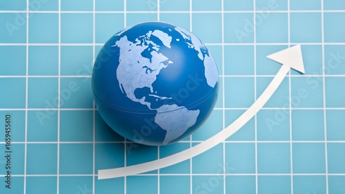globe, earth, earth, arrow, growth, upward, progress, rising, success, business, finance, economy, globalisation, international, development, strategy, concept, idea, chart, graph, datum, trend, increase, positive, future, opportunity, investment, market, travel, blue, background, grid, pattern, overhead, topview, symbol, icon, representation, digital artwork, illustration, abstract, modern