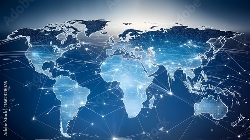 global, network, connection, earth, map, abstract, digital, illustration, technology, cyberspace, communication, datum, networking, connectivity, globalisation, international, business, future, innovation, world map, connection, glowing, line, point, light, blue, dark, background