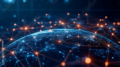 network, connection, globe, earth, global, node, line, illuminated, blue, orange, digital, cyberspace, datum, communication, technology, abstract, futuristic, concept, design, background, illustration, connectivity, wireframe, structure, earth, system, web, wire, graphic, pattern