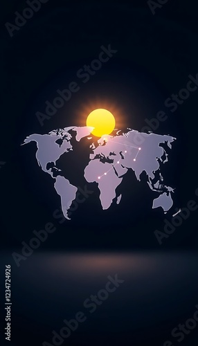 global, network, illuminated, sun, bright, earth, map, continent, country, region, connection, line, dot, point, datum, information, communication, technology, cyberspace, digital, worldwide, international, infrastructure, globalisation, travel, transportation, trade, business, economy, growth, development, future, progress, innovation, opportunity, potential, ambition, success, vision, strategy, planning, leadership, teamwork, collaboration