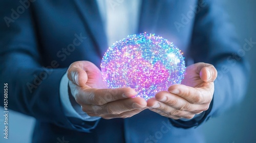 enterprise, artificial intelligence, connectivity, networking, computing, cyberspace, globe, innovation, strategy, future, futuristic, global, science, security, smart, development, idea, information, datum, solution, corporate, graphic, connection, hand, cyberspace, businessman, digital artwork, ai, high technology, communication, illustration, business, technology, holding, modern, abstract, digital, concept, design, creative, background, global business