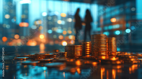 global trade and investment, this image features a pile of golden coins against, symbolizing wealth and economic transactions across borders