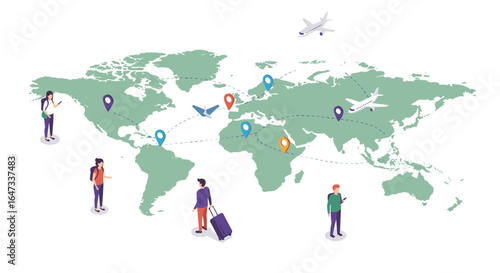 isometric, travel, global, map, connection, people, journey, technology, communication, tour tourism, earth, geography, interactive, aeroplane, location, destination, passport, exploration, route, digital, adventure, network, international, vacation, marker, logistic, coordination, traveler, navigation, itinerary, flight, trip, connectivity, worldwide, discovery, track, holiday maker