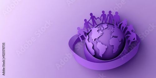 Global Unity: Paper Cutout People Encircling a 3D Earth Globe, symbolizing International Collaboration and World Peace