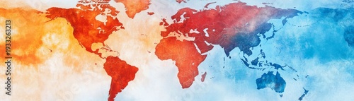 Global Warming World Map Red and Orange Hues Depicting Heat Over Continents, Transitioning to Blue Zones, Earth Climate Change, Heatmap, Climate Crisis