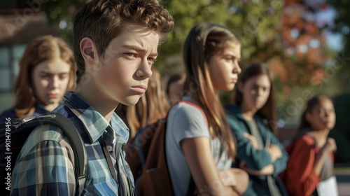 Gloomy Group of Teens In School Yard Expressing Concerns and Emotions