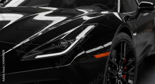Glossy Black Sports Car Headlights - Sleek design, powerful engine, luxury vehicle, high performance, automotive excellence. Symbolizing speed, elegance, power, prestige, and technology