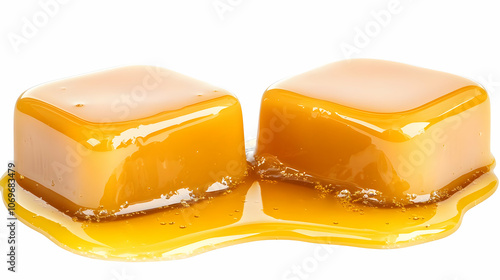 Glossy Caramel Candy Squares with Drips - Realistic Image