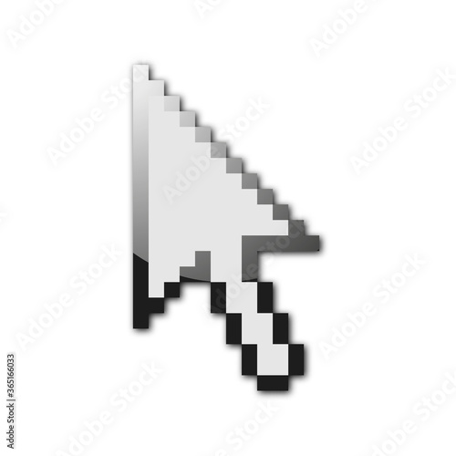 Glossy mouse arrow cursor isolated on white background.
