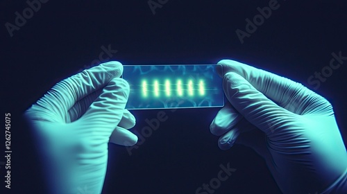 Gloved Hands Holding Illuminated Microchip - Technological Advancement Concept