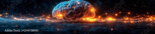 Glowing Brain with Flowing Light Paths and Cosmic Sparkles. Generative AI