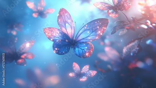 butterfly, aethereal, glow, aglow, dreamy, fantasy, magical, wing, iridescent, light, blue, pink, sparkle, shimmer, delicate, fragile, serene, peaceful, tranquil, nature, flight, wonderland, enchanting, beauty, graceful, soft, vibrant, whimsical, mystical, colourful, illuminated, air, freedom, levitation, transformation, airy, fluttering, floating, sky, dawn, dusk, cosmic, nebula, starry, celestial, bloom, blossom
