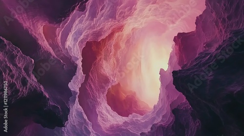 Glowing Canyon Interior, Fantasy Landscape, Purple, Orange, Background, Abstract Art