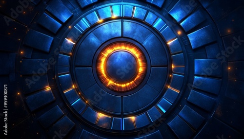 blue, orange, circle, glow, light, structure, futuristic, design, abstract, geometric, pattern, metal, shiny, technology, digital, modern, background, graphic, illustration, dark, tech, surface, glowing, reflective, metallic, sparkle, grid, shape, art, concept, dynamic, texture, line, visual, style